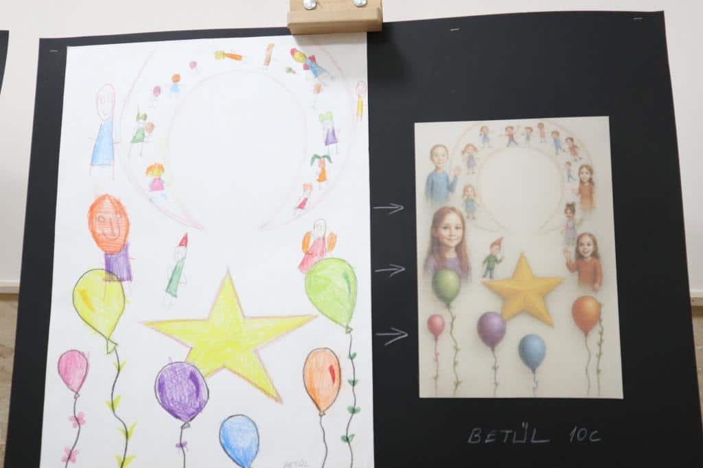 23 Nisan Ulusal Egemenlik ve Çocuk Bayramına katılan velilerimiz de öğrencileri ile beraber bu coşkuyu yaşadılar. Ayrıca dönem boyunca öğrencilerimiz tarafından yapılan resimler, özel eğitim öğretmenimiz Recep CERAN tarafından yapay zeka desteği ile yeniden işlenerek farklı bir temada sergilendiler.